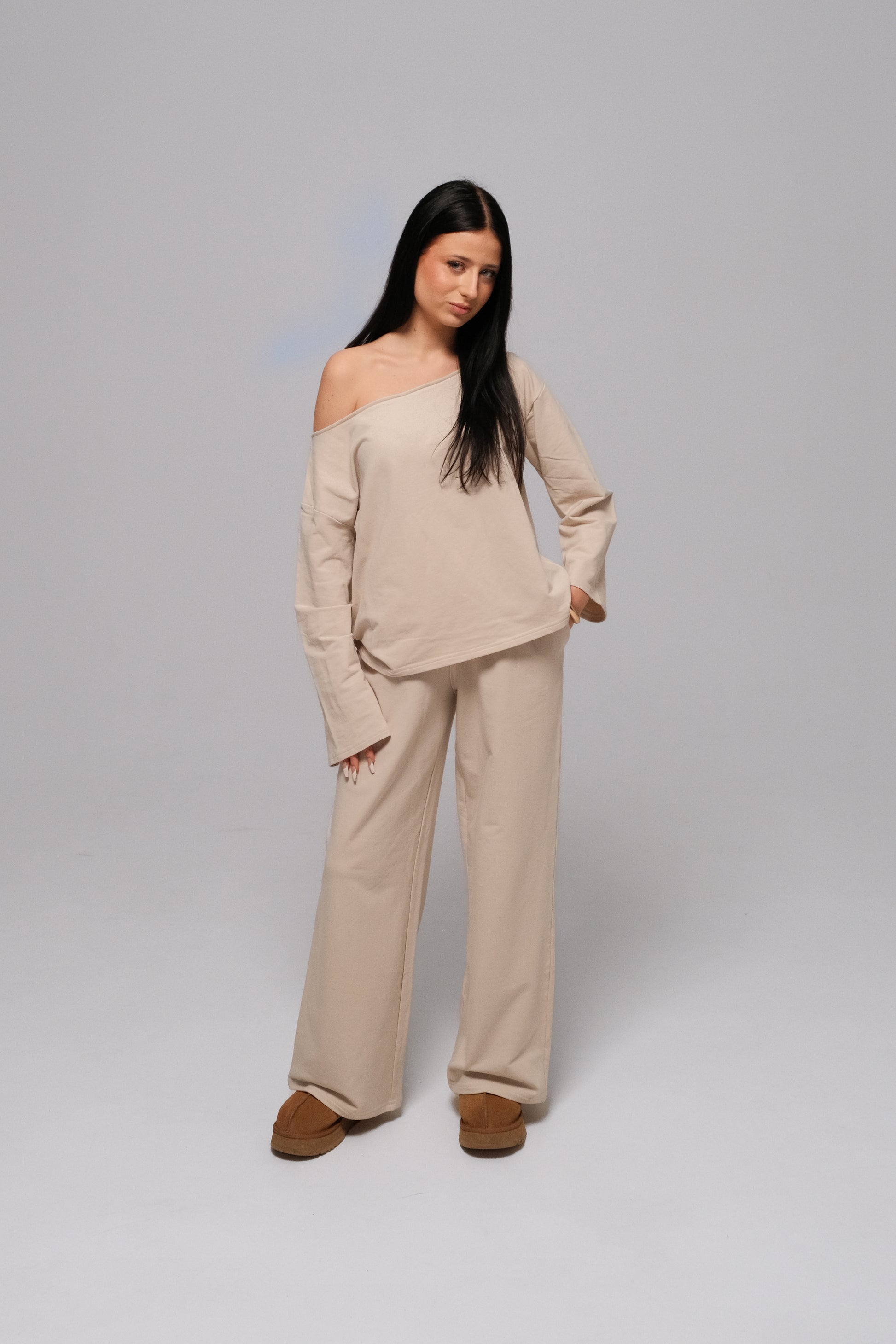 SAND BEIGE OFF SHOULDER LONG SLEEVE