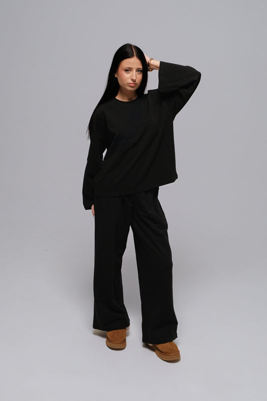 BLACK WIDE LEG SWEATPANTS